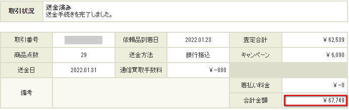 この間(※といっても、2022年1月ですが…)買取してもらった